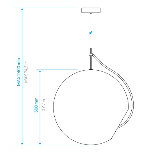 Krásne a jednoduché visiace svietidlo z fúkaného Muránskeho skla. Svojou tvarovou a materiálovou čistotou zapadne v každom interiéry. Priemer čírej sklenenej gule je 50cm.